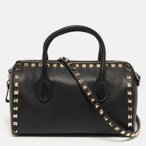 Valentino Black Leather Medium Alcove Rockstud Top Handle Bag