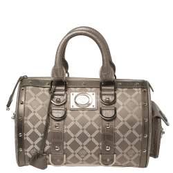 Versace Metallic Grey Signature Canvas and Croc Embossed Leather Snap Out Of It Satchel