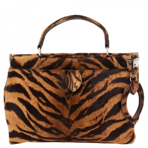 Alaia Brown Tiger Print Calfhair Frame Top Handle Bag