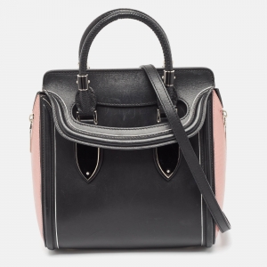 Alexander McQueen Black/Pink Leather and Croc Embossed Detail Small Heroine Top Handle Bag