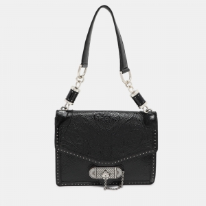 Alexander McQueen Black Embossed Patent Leather Top Handle Bag