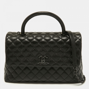 Chanel Black Quilted Caviar Leather Small Coco Top Handle Bag