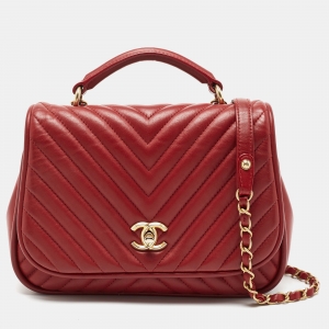 Chanel Red Chevron Quilted Leather Small Coco Top Handle Bag