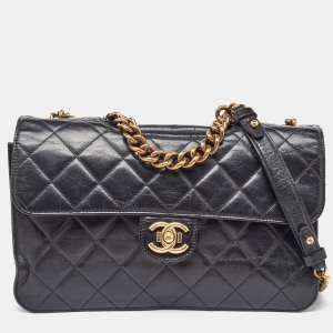 Chanel Black Quilted Leather CC Chain Link 19 Flap Bag