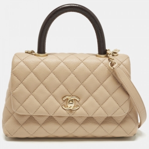 Chanel Beige Quilted Glazed Leather Castle Rock Top Handle Bag