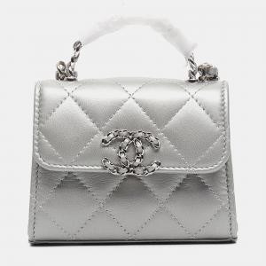 Chanel Grey Quilted Leather Vanity Case Top Handle Bag