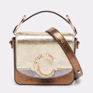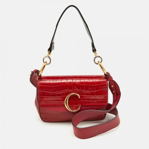 Chloe Tri Color Croc Embossed Leather C Top Handle Bag