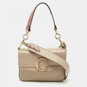 Chloe Grey Leather and Suede Faye Top Handle Bag