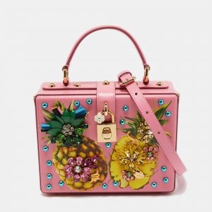 Dolce & Gabbana Pink Floral Crystal Embellished Leather Dolce Box Bag