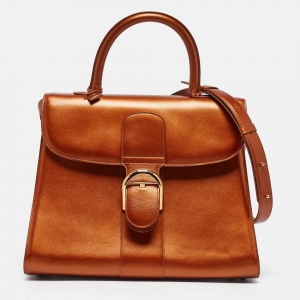 Delvaux Metallic Bronze Leather Brillant Sellier GM Top Handle Bag