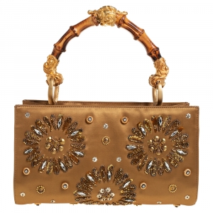 Gianfranco Ferre Gold Satin Crystal Embroidered Top Handle Bag