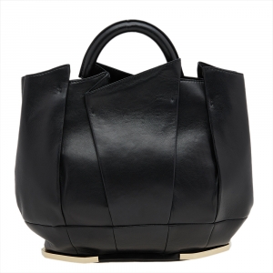 Gianfranco Ferre Black Pleated Leather Top Handle Bag