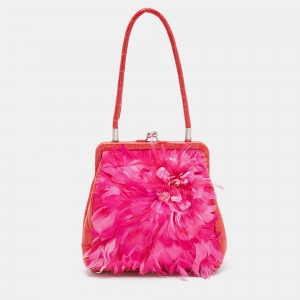 Gianfranco Ferre Red/Magenta Crocodile and Feather Top Handle Bag