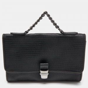 Longchamp Black Embossed Leather Chain Top Handle Bag