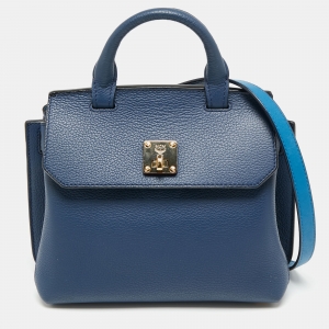 MCM Black Leather Turlock Double Flap Top Handle Bag