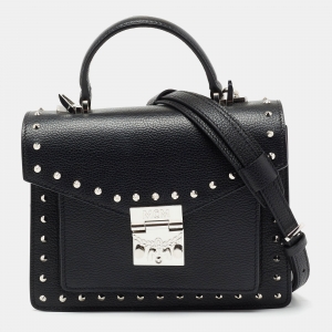 MCM Black Leather Patricia Studded Top Handle Bag