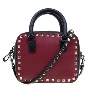 Valentino Burgundy Leather Studded Micro Rockstud Top handle Bag