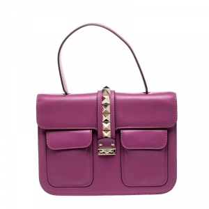 Valentino Burgundy Painted Leather My Rockstud Top Handle Bag