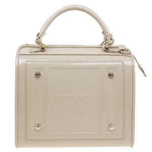 Versace Jeans Beige Patent Leather Medium Box Top Handle Bag
