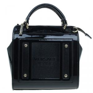 Versace Jeans Black Patent Leather Medium Box Top Handle Bag