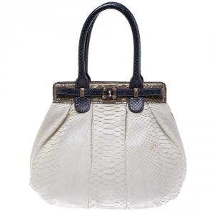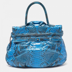 Zagliani Blue Python Puffy Top Handle Bag
