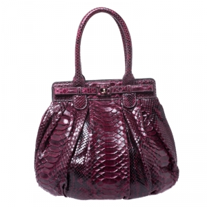 Zagliani Burgundy Python Muna Top Handle Bag
