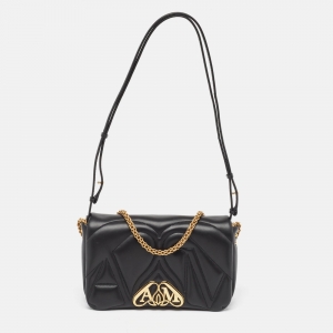 Alexander McQueen Black Diamond Embossed Leather Heroine Chain Shoulder Bag
