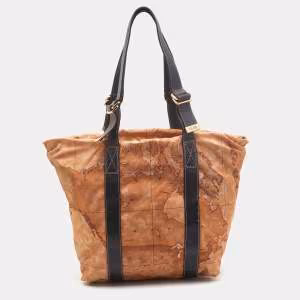 Alviero Martini 1A Classe Brown Map Embossed Leather Hobo