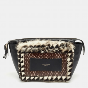 Aspinal Of London Black/White Leather, Rabbit Fur and Snakeskin Shoulder Bag