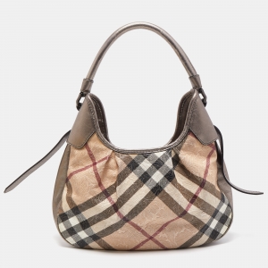 Burberry Brown/Black Nova Check PVC and Leather Small Brooklyn Hobo