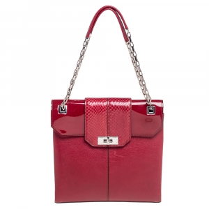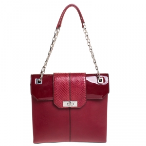 Cartier Burgundy Patent Leather/Suede and Python Classic Feminine Line Chain Bag