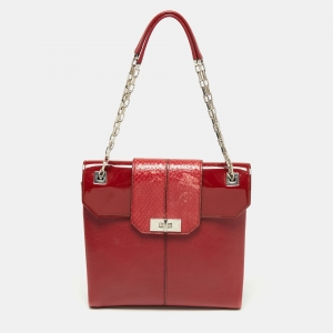 Cartier Red Leather and Python Shoulder Bag