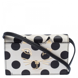 Charlotte Olympia Black/White Polka Dot Leather Feline Crossbody Bag