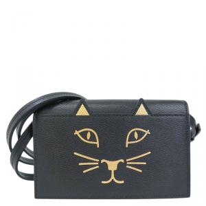Charlotte Olympia Black Calf Leather Feline Purse Shoulder Bag