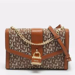 Dkny Beige/Brown Monogram Coated Canvas and Leather Crossbody Bag