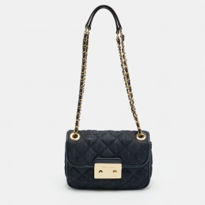 Michael Kors Navy Blue Quilted Denim and Leather Sloan Shoulder Bag