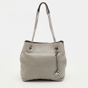 Michael Kors Metallic Grey Textured Patent and Leather Logo Charm Shoulder Bag