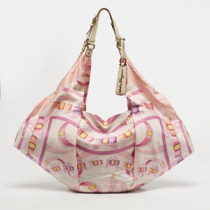 Salvatore Ferragamo Pleated Bow Print Pink Leather and Nylon Hobo