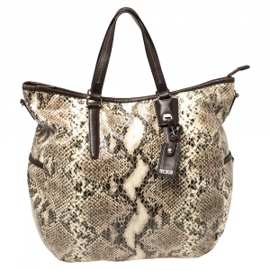 TUMI Brown/Beige Python Effect Leather Zip Shoulder Bag