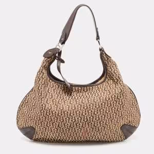 Aigner Beige/Brown Monogram Canvas and Leather Side Zip Hobo