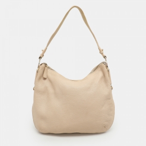 Aigner Light Beige Logo Embossed Leather Charm Hobo