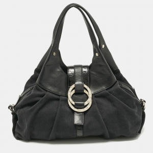 Bvlgari Black Fabric and Leather Chandra Hobo