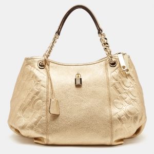 CH Carolina Herrera Metallic Gold Embossed Leather Chain Bow Hobo