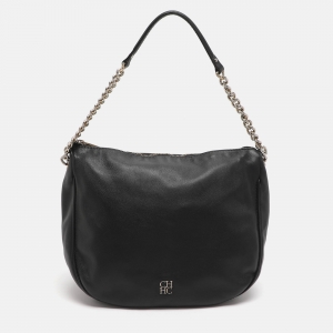CH Carolina Herrera Black Leather Chain Tassel Hobo