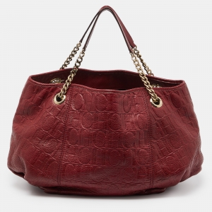 CH Carolina Herrera Red Monogram Embossed Leather Scarf Hobo
