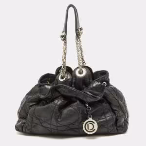 Dior Black Leather Plisse Hobo