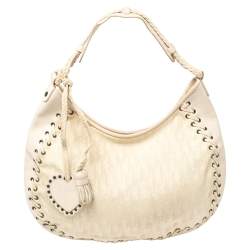 Dior White/Gold Macrocannage Leather Small Vibe Hobo
