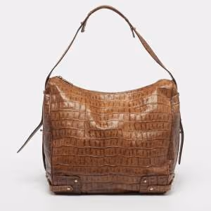Giorgio Armani Brown Croc Embossed Leather Hobo