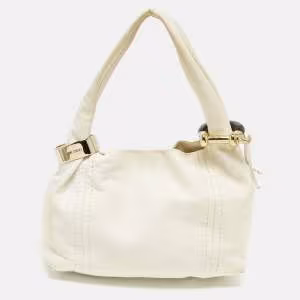 Jimmy Choo White/Light Beige Leather and Suede Maia Hobo
