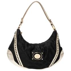 Versace Black/Gold Nylon and Leather Studded Hobo